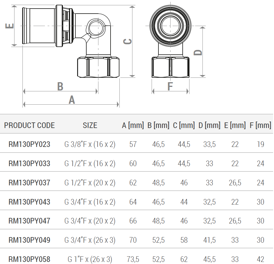 Cot de presare la 90°, cu piulita cu fata plata si filet interior 1”, destinat pentru conectarea tevilor multistrat Ø26 mm (26 x 3) in instalatii de incalzire, racire sau apa menajera. Modelul Giacomini RM130PY058 face parte din seria RM multi-jaw si este compatibil cu principalele profile de presare (TH, H si U), oferind o etansare sigura si durabila.