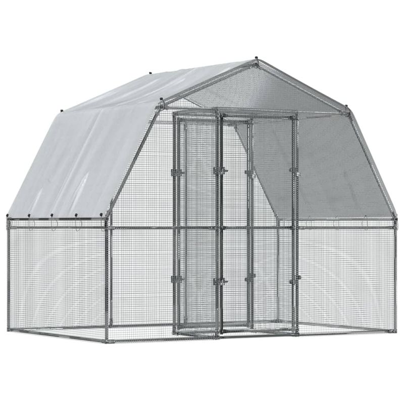 Cotet de pui 2 buc., cu acoperis/usa, argintiu, otel galvanizat, mărime 285x195x230 cm Cotet de pui 2 buc., cu acoperis/usa, argintiu, otel galvanizat, mărime 285x195x230 cm