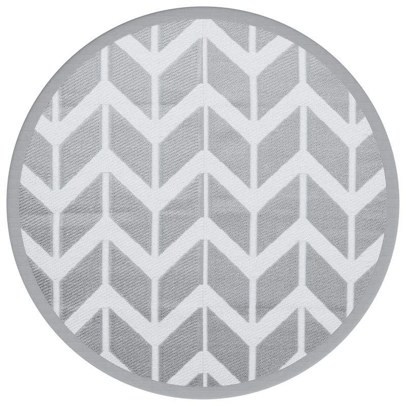 Covor de exterior, alb și gri, diametru 120 cm, PP Covor de exterior, alb și gri, diametru 120 cm, PP