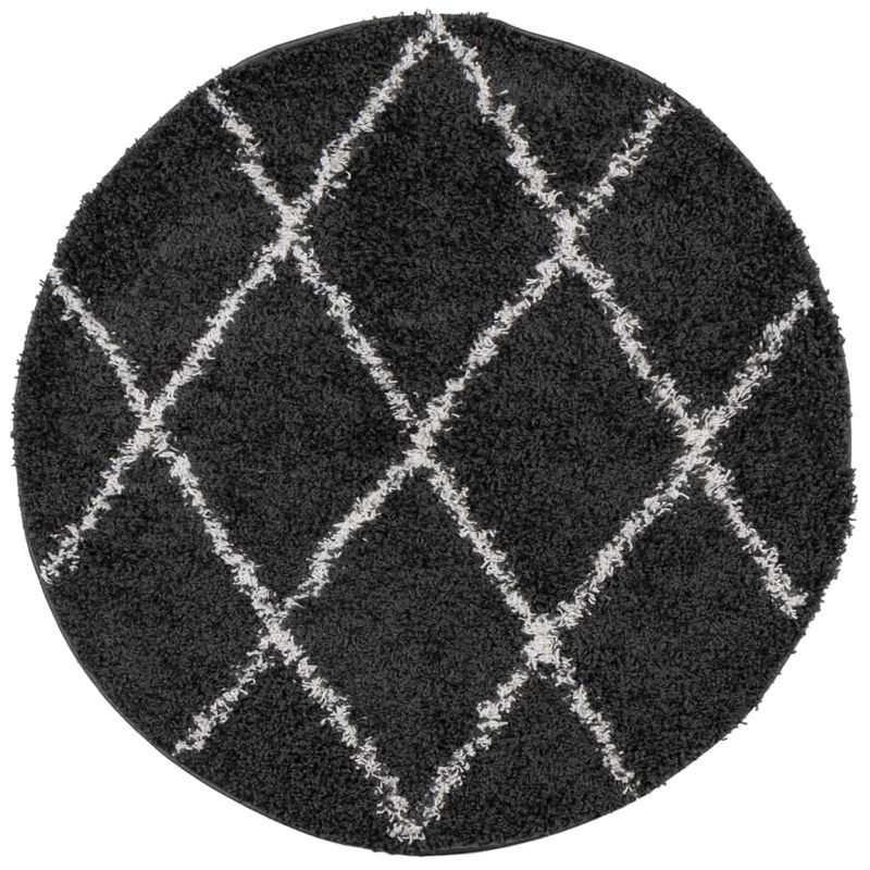 Covor pufos cu fire inalte, negru si crem modern, Ø 80 cm Covor pufos cu fire inalte, negru si crem modern, Ø 80 cm