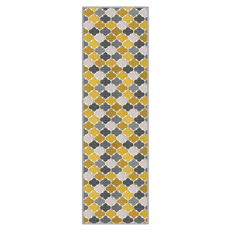 Adaugă o notă de sofisticare casei tale cu covorul nostru frumos lucrat, având un design modern în culorile Gri, Muștar și Gri Închis. Imprimarea digitală 3D creează un efect vizual uimitor care va impresiona oaspeții tăi și va îmbunătăți atmosfera oricărei camere.