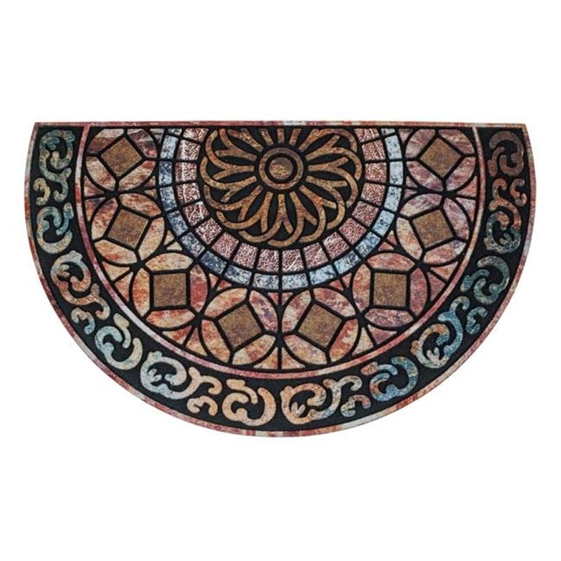 Covoras semicerc pentru intrare din cauciuc cu suprafata textila, model reliefat tip mandala, 75x45 cm, multicolor