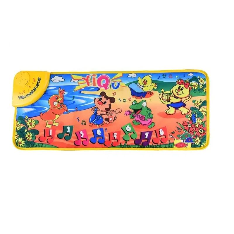 Covorasul muzical cu pasari si animalute este o piesa captivanta de decor si in acelasi timp o jucarie pentru bebelusi si copii mici. Acest covor imbina functionalitatea cu aspectul vizual atragator, oferind o experienta interactiva si educativa pentru cei mici. Designul covorului este dominat de o paleta de culori vii si luminoase, creand un mediu vizual stimulant pentru copii. Pe covor, veti gasi desene frumos realizate ale diferitelor pasari si animalute, fiecare cu propriul lor aspect distinctiv. Pasarile de diverse culori, de la sticlete delicate la papagali plini de culoare, vor captiva cu siguranta privirea si curiozitatea copiilor. Covorul este prevazut cu functii muzicale care sunt activate cand copiii interactioneaza cu zonele specifice ale acestuia. Atingerea sau apasarea unor anumite zone declanseaza sunete melodice, cantece vesele si poate chiar efecte sonore imitative ale sunetelor produse de animale. Aceasta nu numai ca incurajeaza coordonarea maa-ochi, dar si dezvolta auzul si perceptia copiilor. Materialul folosit pentru covor este moale si confortabil, oferind un spatiu sigur pentru bebelusi sa stea si sa se joace. Marginile sunt de obicei bine finisate, ceea ce impiedica degradarea si contribuie la durabilitatea produsului. Acest covor muzical nu numai ca ii incanta pe cei mici, dar poate fi si o modalitate subtila de a ii invata despre diferite tipuri de animale si sunetele pe care le fac. Este o alegere excelenta pentru a stimula dezvoltarea senzoriala si cognitiva timpurie a copiilor, oferind in acelasi timp distractie si bucurie. Este potrivit pentru utilizarea in camerele de joaca, dormitoare sau chiar in locatiile de joaca pentru copii, contribuind la un mediu inviorator si educativ. Material : plastic + textil Dimensiuni covoras : 72 x 28 cm Dimensiuni ambalaj : 35 x 27 x 4 cm Recomandat copiilor peste 3 ani Necesita 3 baterii 1.5V AA (nu sunt incluse) Atentie! Nu lasati ambalajele jucariilor/produselor la indemana copiilor. Indepartati orice ambalaj al jucariei/produsului inainte de a da jucaria/produsul copilului. Va rugam sa supravegheati copilul in timp ce se joaca/foloseste acest produs. Pastrati instructiunile si etichetele pentru referinte viitoare.