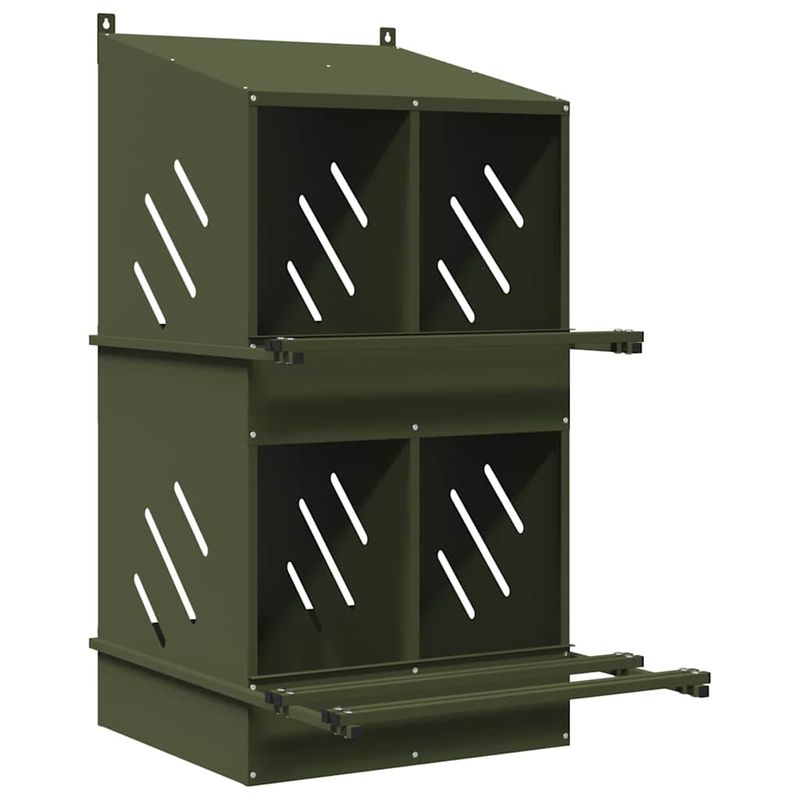 Cuiba pentru pui cu 4 compartimente, metal verde masline, mărime 54x79x109,5 cm Cuiba pentru pui cu 4 compartimente, metal verde masline, mărime 54x79x109,5 cm