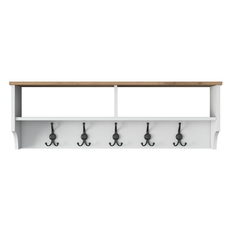 Culoarea solidă și designul modern al suportului nostru pentru hol adaugă o notă de rafinament oricărui decor de casă. Combinația dintre culorile alb și nuc creează un contrast uimitor, care va atrage cu siguranță atenția oaspeților dvs.