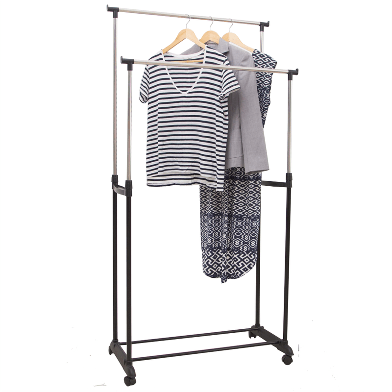 Cuier mobil cu doua randuri, cu raft, negru/argintiu, SVAN Cuier mobil cu doua randuri, cu raft, negru/argintiu, SVAN
