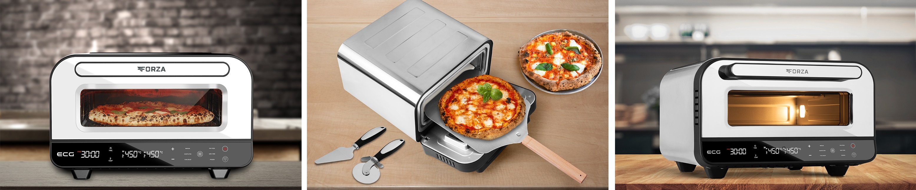 Esti un iubitor de pizza autentica italiana si ti-ai dori sa prepari aceasta delicatesa la un nivel ridicat, chiar in confortul propriei case ? Atunci ECG FORZA 4500 Pizza este exact aparatul potrivit pentru tine. Acest cuptor compact ofera pregatirea de pizza crocanta perfecta la un nivel profesional. Datorita temperaturii de pana la 450 °C, a pietrei de copt de calitate si a functiilor bine gandite, are grija ca aluatul sa fie copt perfect, in timp record, oferindu-ti in acelasi timp siguranta, eficienta si o utilizare usoara. Pe scurt, cu acest cuptor poti savura oricand o pizza delicioasa, exact pe gustul tau. Designul metalic elegant completeaza cu stil orice bucatarie, fie ea moderna sau rustica.