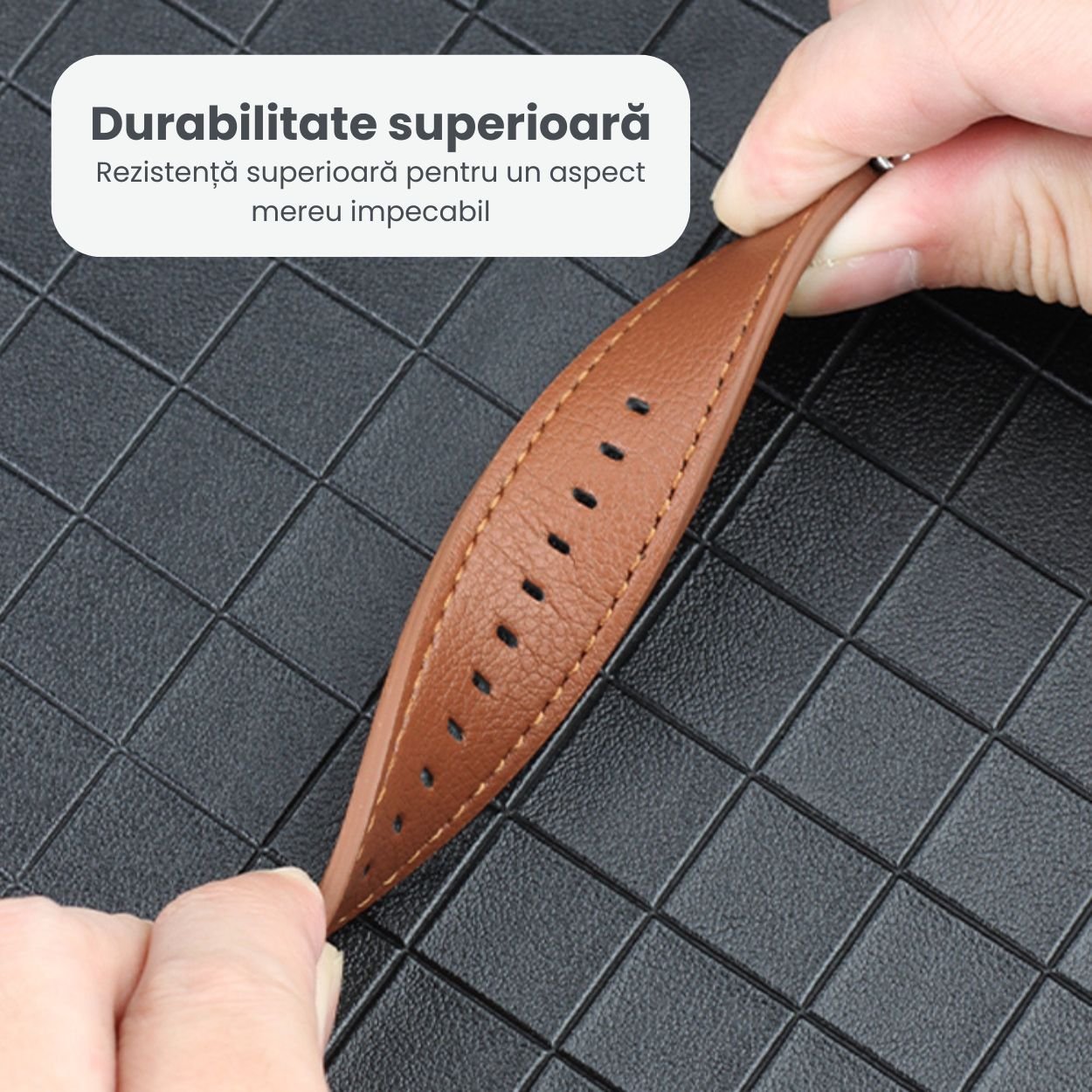Cureaua din piele naturala GAVIO® LeatherWatch este o alegere excelenta pentru cei care cauta un accesoriu durabil, rezistent si elegant. Pielea naturala de inalta calitate asigura o durabilitate superioara, mentinandu-si aspectul atractiv chiar si dupa utilizarea pe termen lung. Cusatura de sa, utilizata in constructia curelei, adauga un plus de robustete si rezistenta, facand cureaua sa fie mai putin predispusa la rupere sau uzura. Aceasta metoda traditionala de cusut nu doar ca intareste cureaua, dar ii confera si un aspect sofisticat si bine finisat.