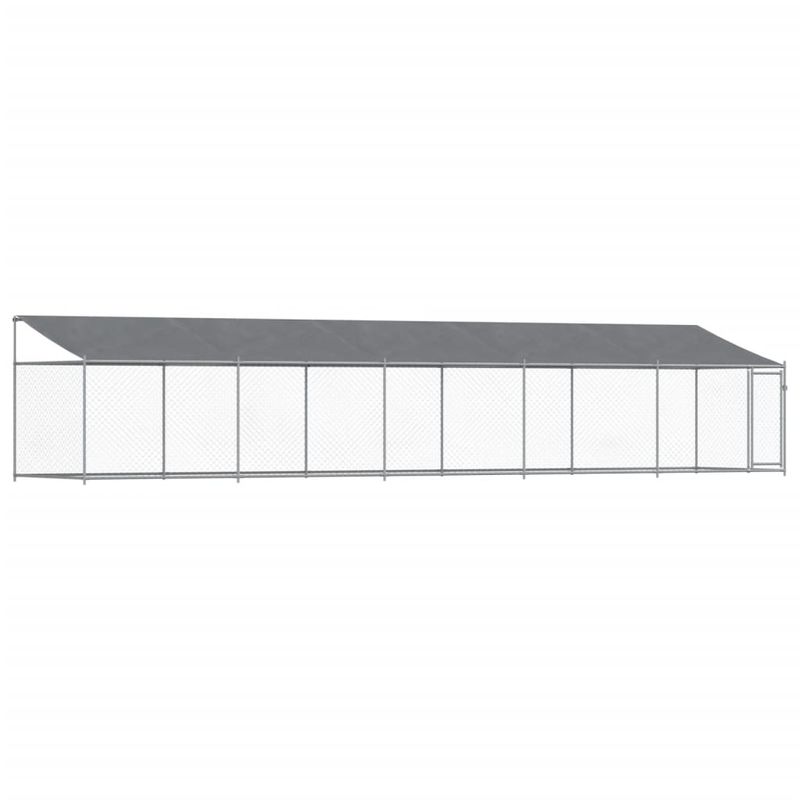 Cusca caini cu acoperis si usa, gri, 10x2x2 m, otel galvanizat Cusca caini cu acoperis si usa, gri, 10x2x2 m, otel galvanizat