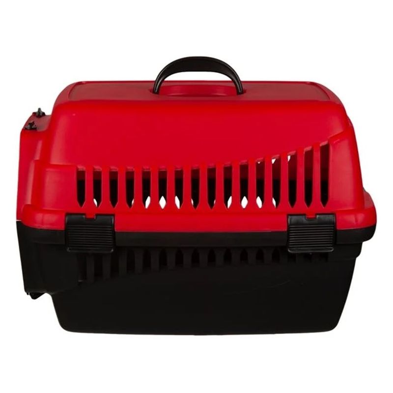 Cusca de transport pentru animale, din plastic dur, dimensiuni 48x28x30 cm, rosu-negru – Siguranta si confort in deplasare!