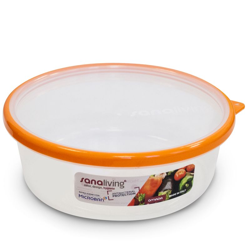 Cutie de conservare alimente rotunda Sanaliving 18x6,5 cm. 1L Cutie de conservare alimente rotunda Sanaliving 18x6,5 cm. 1L capac portocaliu