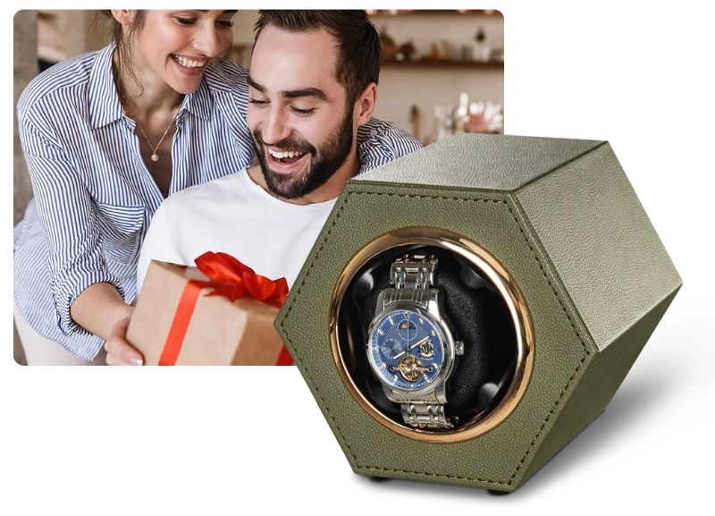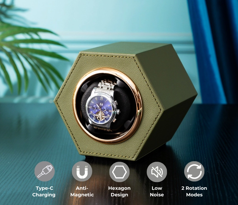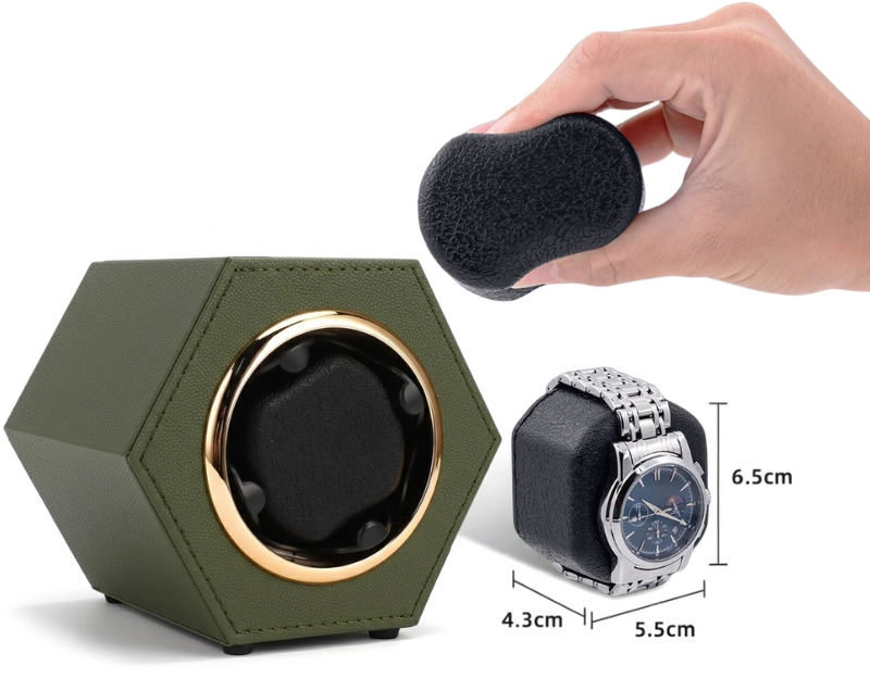 Cutie intors ceas automat iUni, Watch Winder, Piele ecologica, Kaki Cutie intors ceas automat iUni, Watch Winder, Piele ecologica, Kaki