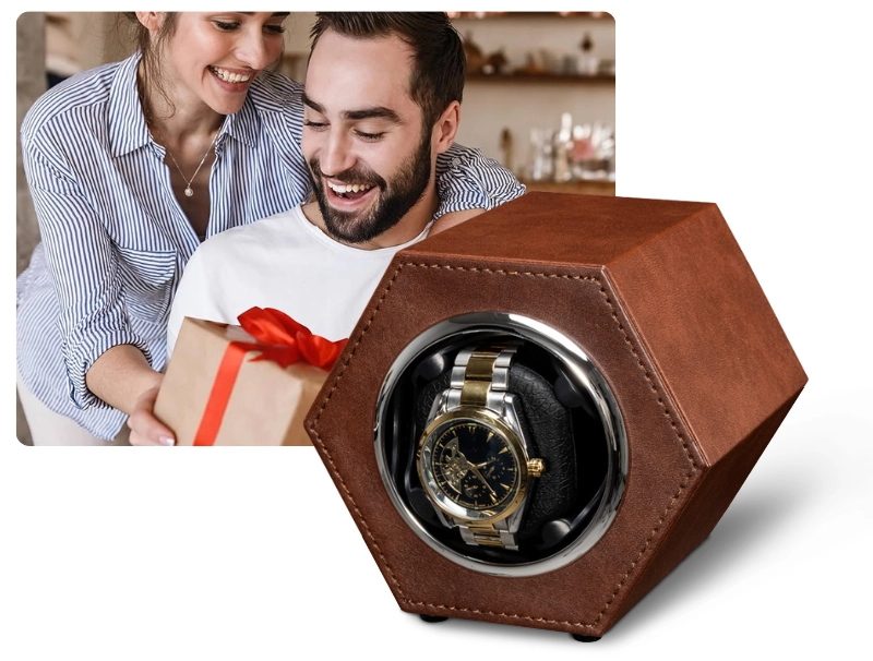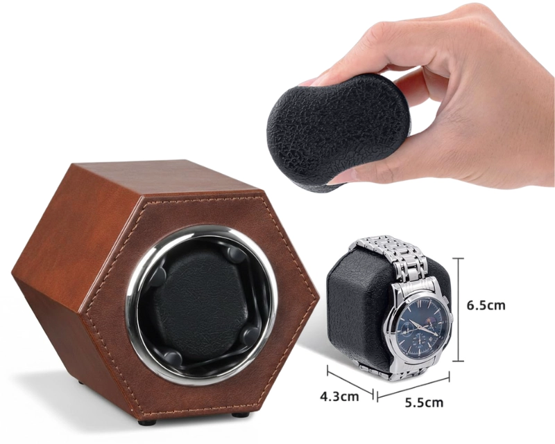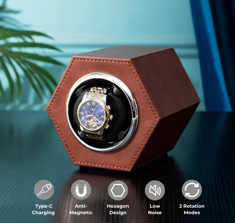 Cutie intors ceas automat iUni, Watch Winder, Piele ecologica, Maro Cutie intors ceas automat iUni, Watch Winder, Piele ecologica, Maro