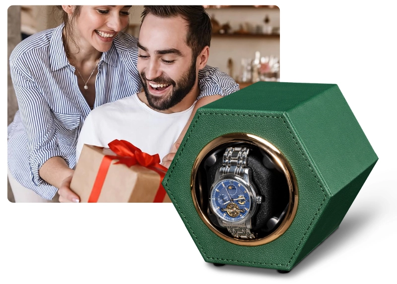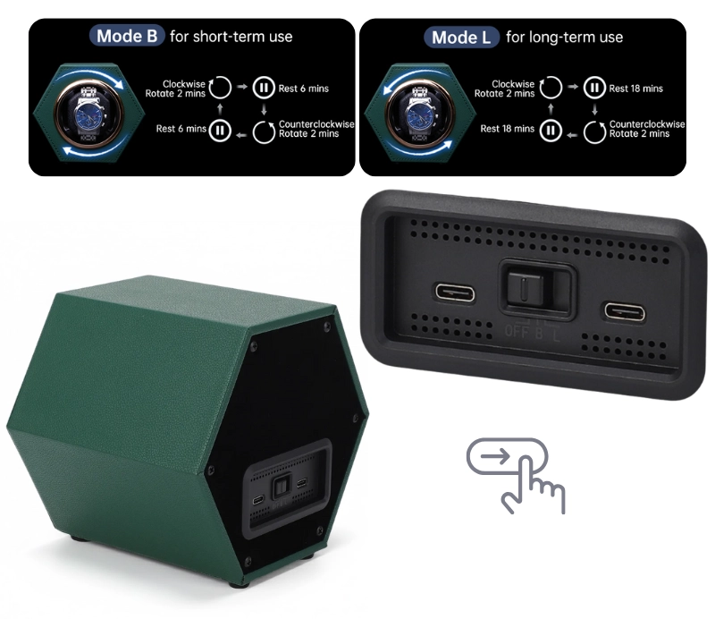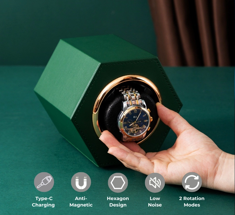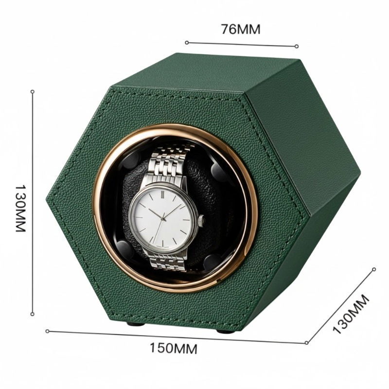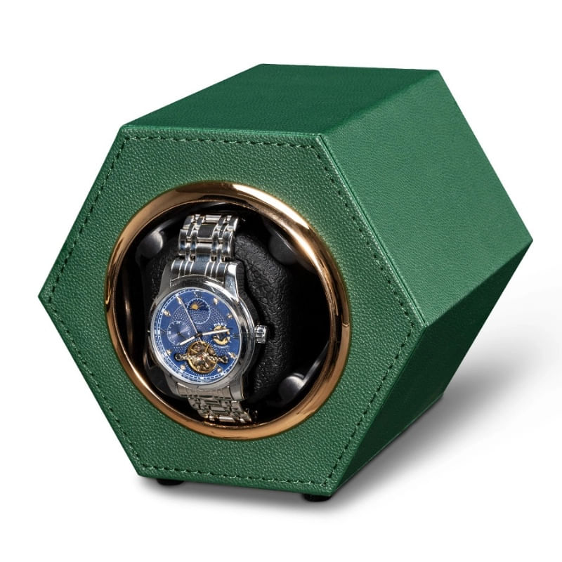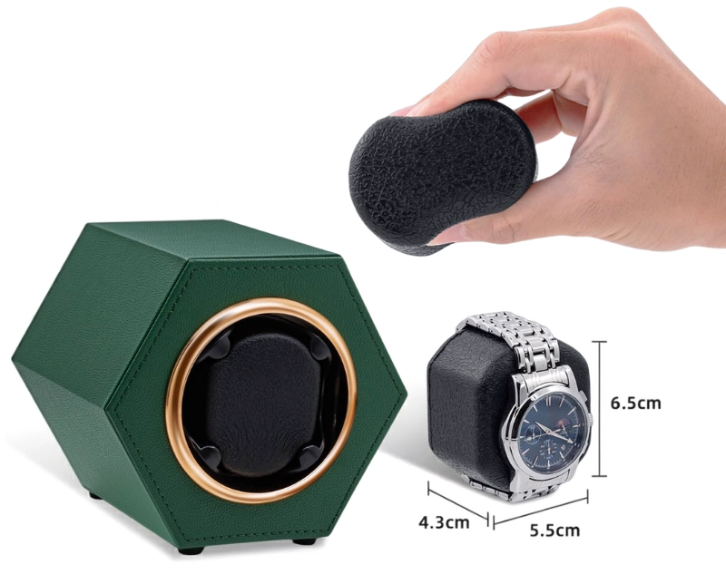 Cutie intors ceas automat iUni, Watch Winder, Piele ecologica, Verde Cutie intors ceas automat iUni, Watch Winder, Piele ecologica, Verde