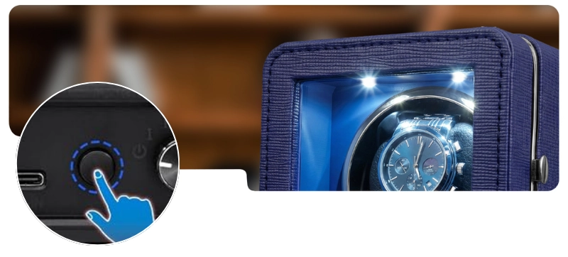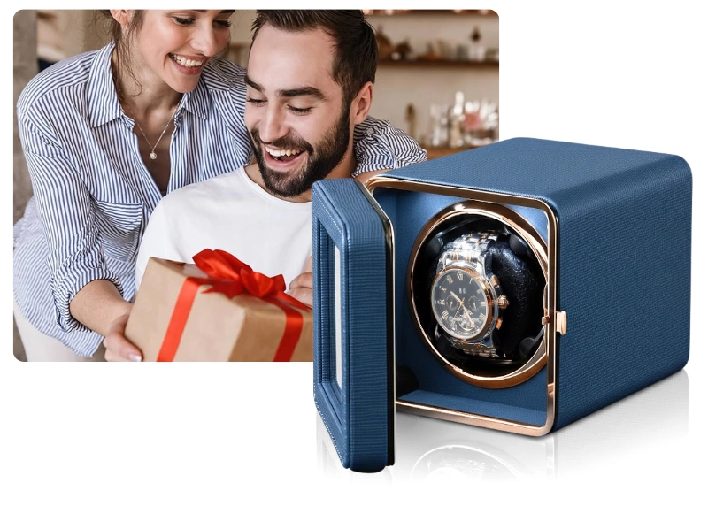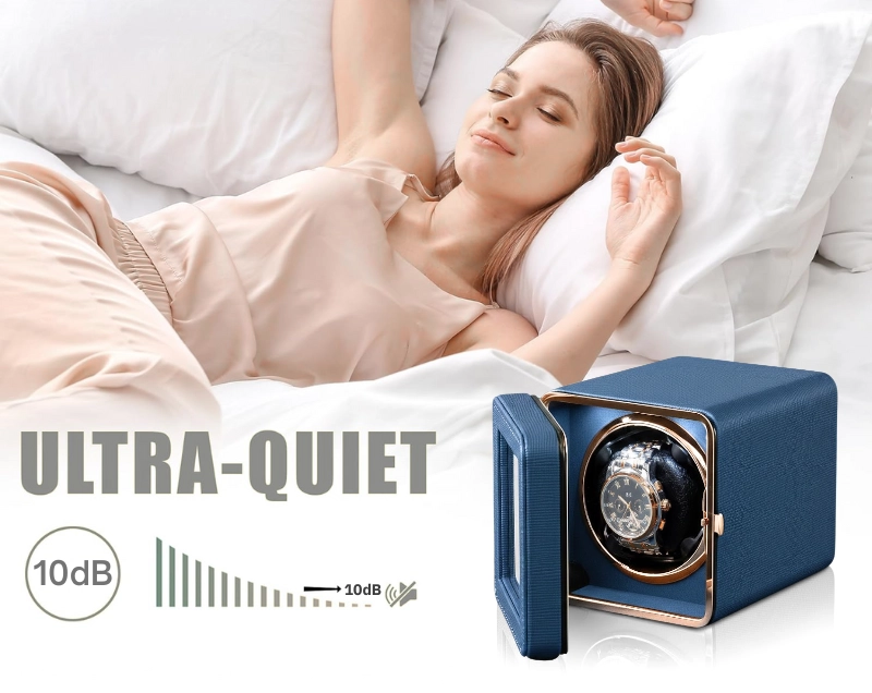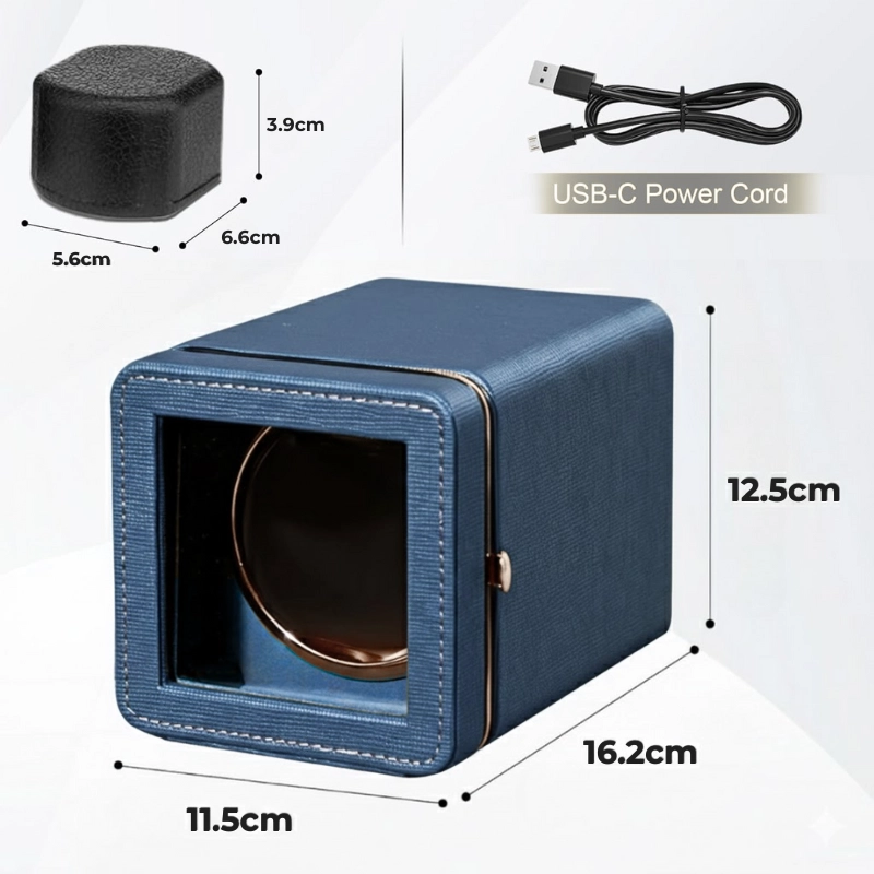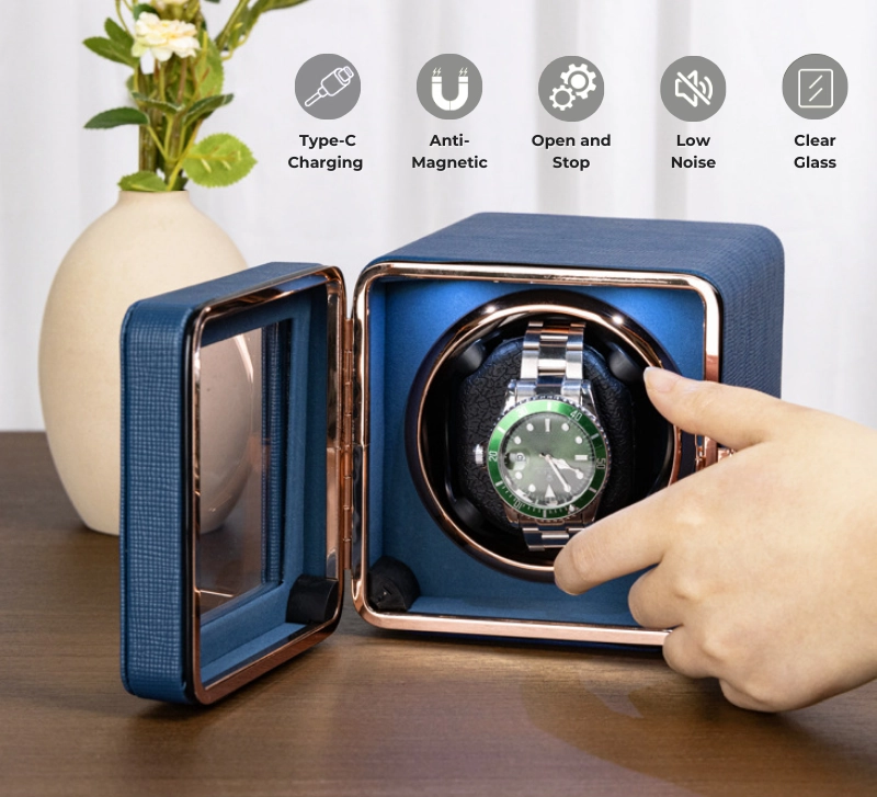 Cutie intors ceas automatic iUni, Watch Winder, Piele ecologica, Albastru Cutie intors ceas automatic iUni, Watch Winder, Piele ecologica, Albastru