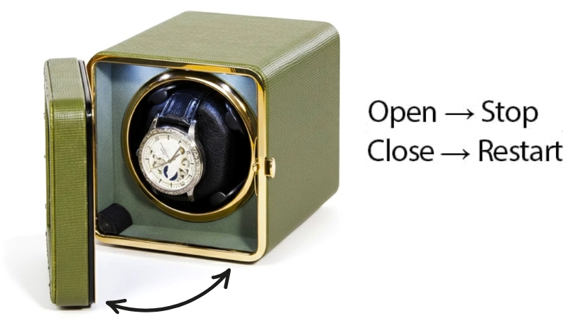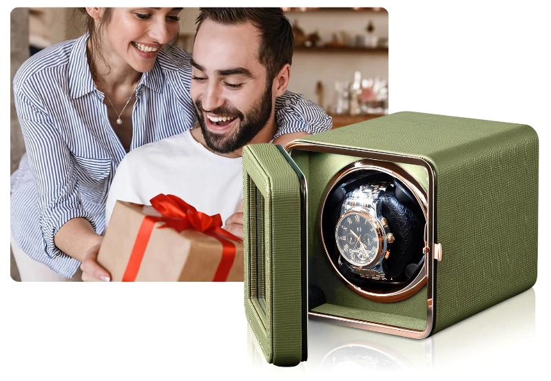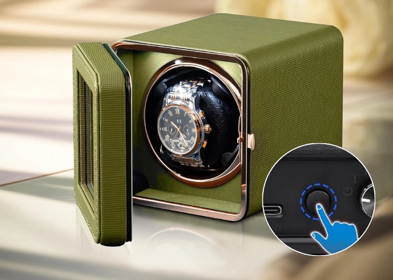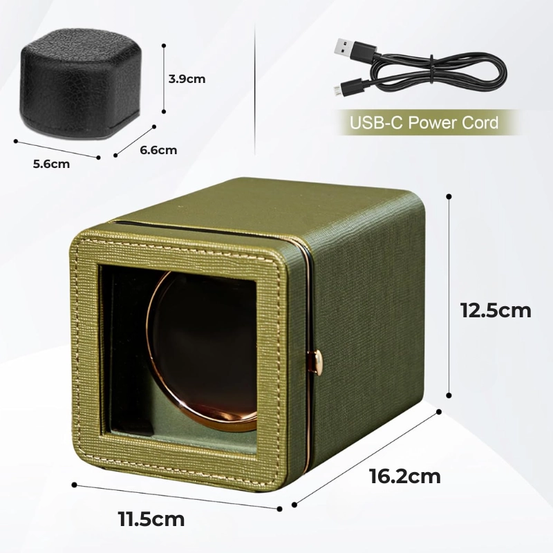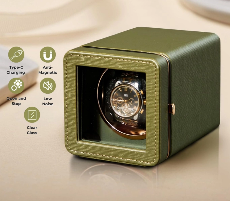 Cutie intors ceas automatic iUni, Watch Winder, Piele ecologica, Verde Kaki Cutie intors ceas automatic iUni, Watch Winder, Piele ecologica, Verde Kaki
