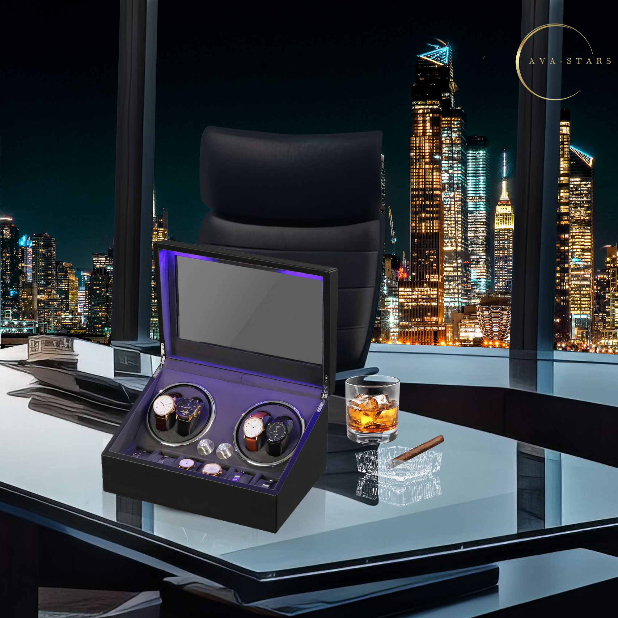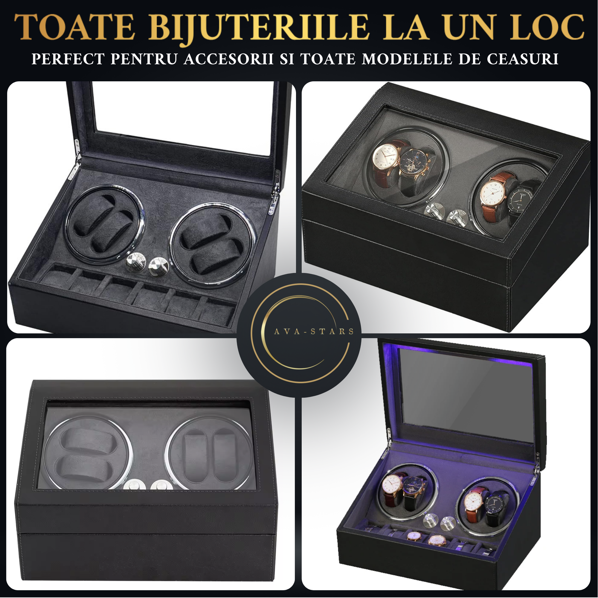 O cutie de intors ceasuri Ava-Stars ® reprezintă apogeul artizanatului rafinat. Atingand un echilibru intre inginerie de precizie și design de inaltă clasă, acest dispozitiv nu este doar un simplu accesoriu, ci o piesă centrală in orice colecție de ceasuri. Materialele atent selectate, detalii atent adaugate, si tot designul creand un contrast elegant și sofisticat. Fiecare cusătură impecabilă reflectă pasiunea pentru detaliu și dă naștere unei cutii de o durabilitate excepțională.