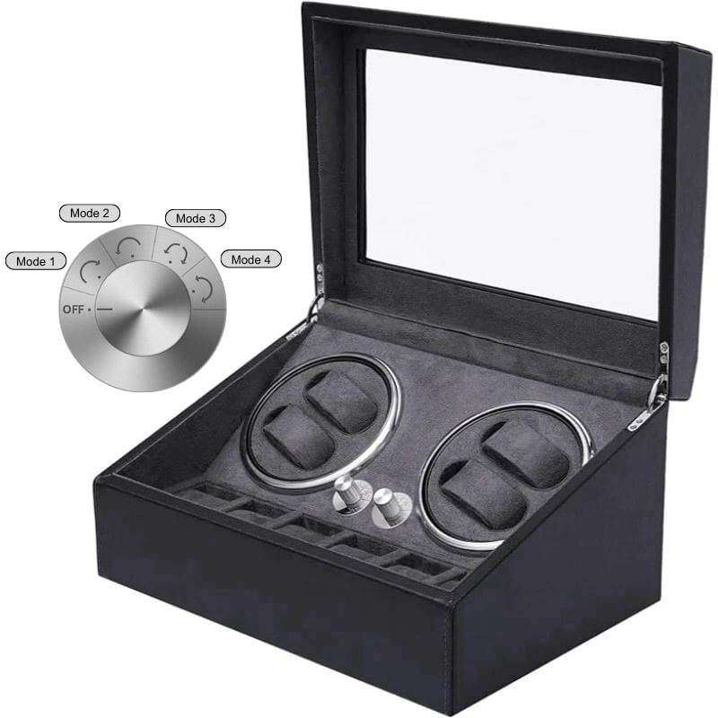 Watch Winder-ul functioneaza cu patru programe de rotatie, care pot fi selectate utilizand butonul rotativ din interior: