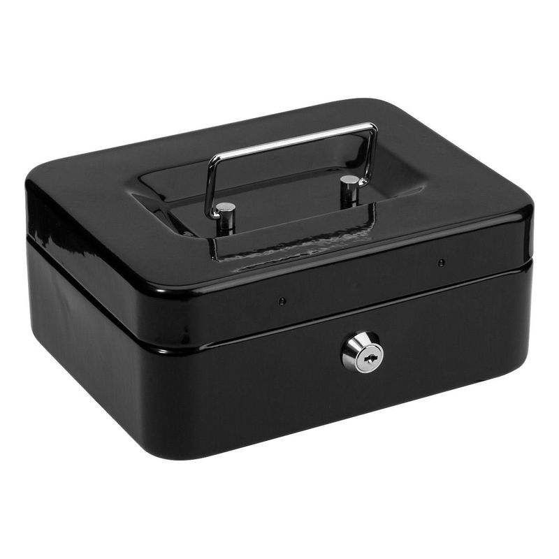 Cutie metalica depozitare bani, 20x 16 x 9cm, compartimente interne, negru Cutie metalica depozitare bani, 20x 16 x 9cm, compartimente interne, negru