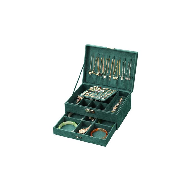 Cutie pentru bijuterii, 2 compartimente, catifea, verde, 17x23x10.5 cm Cutie pentru bijuterii, 2 compartimente, catifea, verde, 17x23x10.5 cm