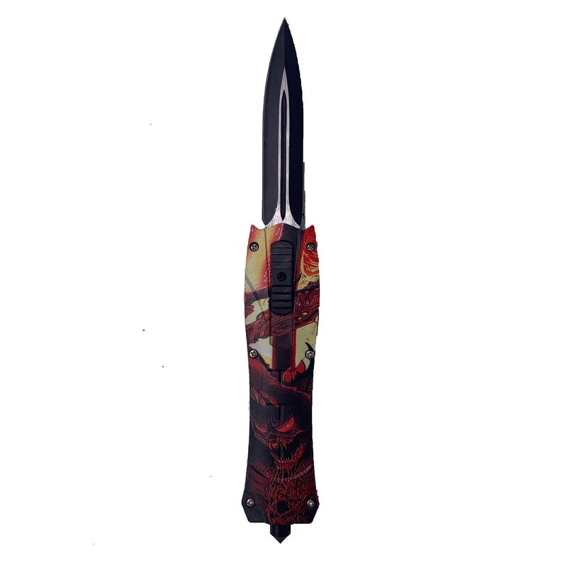 Sport si OutdoorCampingCutite, bricege si accesoriiCutite si bricegeCutit Automat Cu Buton, Model Demon, Multicolor, Dispozitiv Spart Geam, Prindere La Curea, 24x3.4x1.5 cm