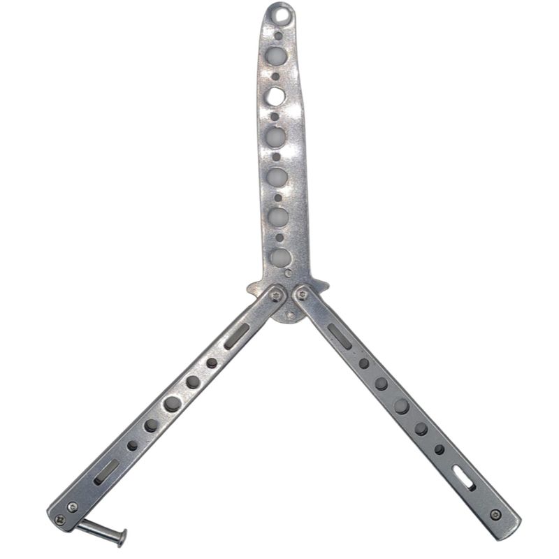 Cutit fluture Butterfly, Balisong 22.50 cm, gri, fara tais, de antrenament, model simplu Cutit fluture Butterfly, Balisong 22.50 cm, gri, fara tais, de antrenament, model simplu