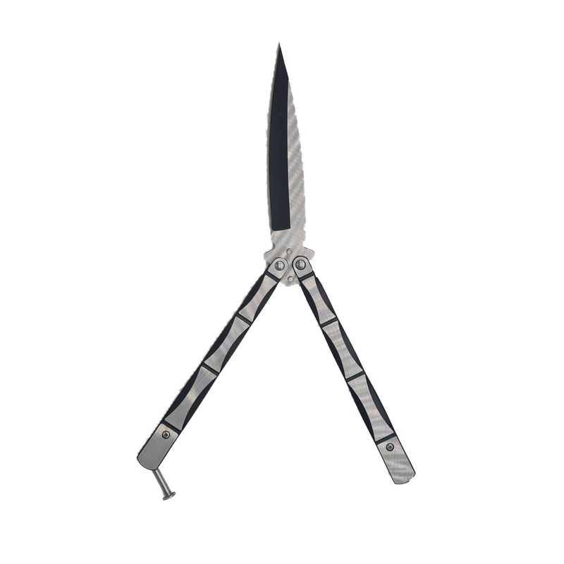 Cutit fluture Butterfly, Balisong, 24 cm, model schelet 3D,model culoare gri, culoare negru Cutit fluture Butterfly, Balisong, 24 cm, model schelet 3D,model culoare gri, culoare negru