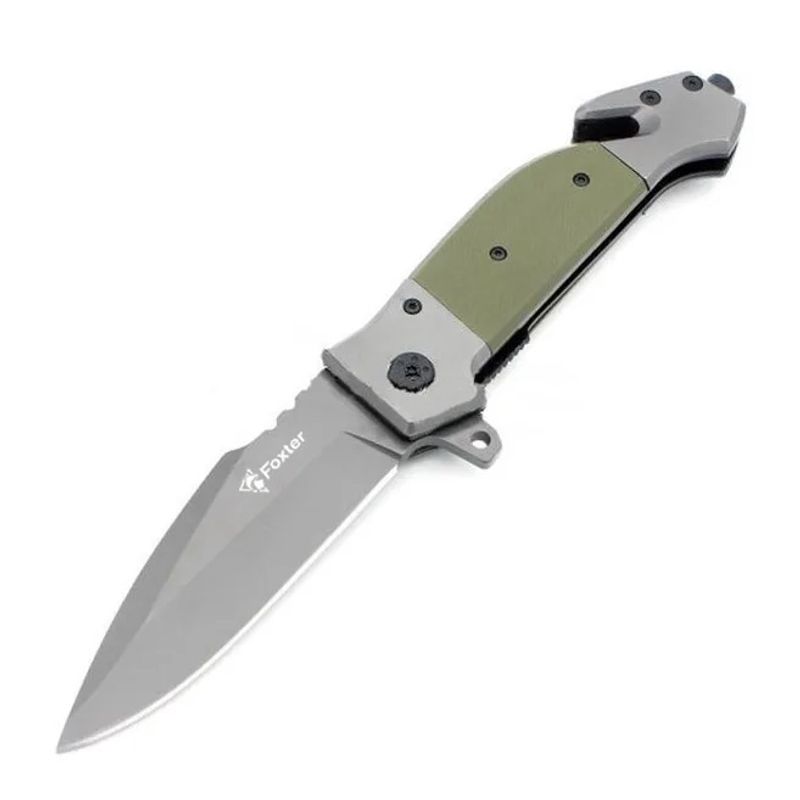 Cutit pliabil tip briceag Foxter, 23 cm, otel inoxidabil, cu dispozitiv taiat centuri si spart geamuri