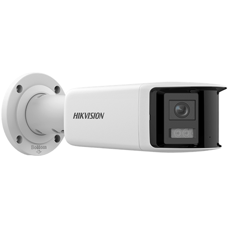 DS-2CD2T46G2P-ISU-SL este o camera IP, de 4MP (3040x1368) de la Hikvision, formata din 2 obiective care preiau imaginile si le suprapun partial pentru a forma o imagine panoramica (180°;).
