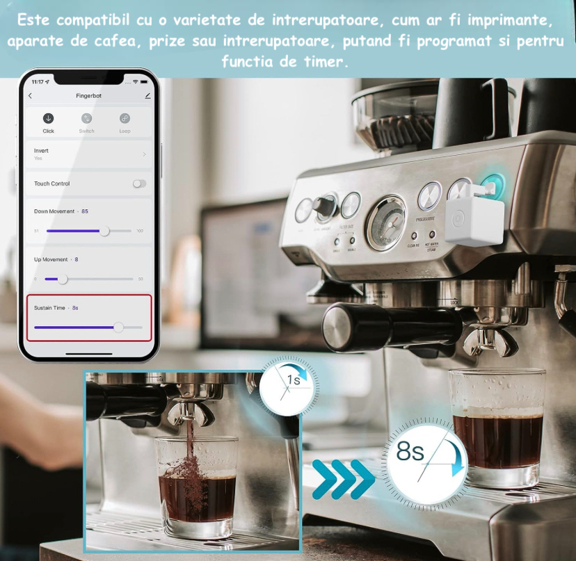 Declansator Mecanic Pentru Intrerupator Smart Home, Accesorii Incluse, FingerBot04, Alb, App control, Buton Inteligent Declansator Mecanic Pentru Intrerupator Smart Home, Accesorii Incluse, FingerBot04, Alb, App control, Buton Inteligent