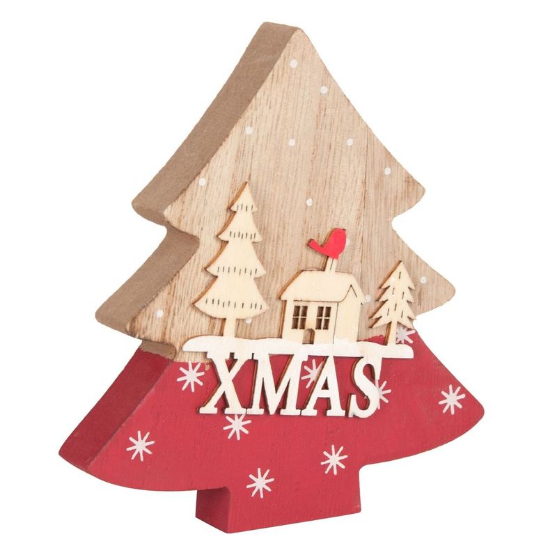 Decor craciun, brad, lemn, 14cm, rosu si natural Decor craciun, brad, lemn, 14cm, rosu si natural