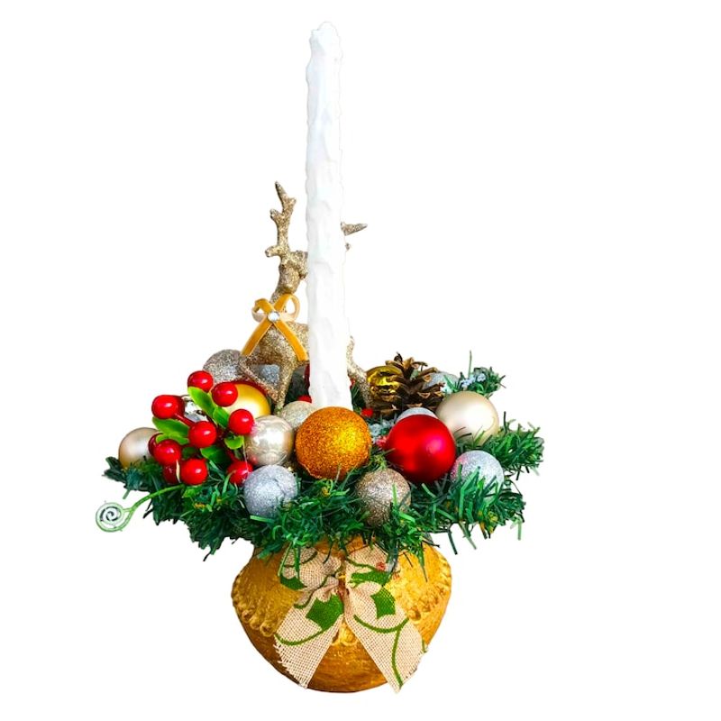 Decoratiune Craciun, aranjament cu brad artificial si lumanare, in vas ceramic, 40x20 cm Decoratiune Craciun, aranjament cu brad artificial si lumanare, in vas ceramic, 40x20 cm
