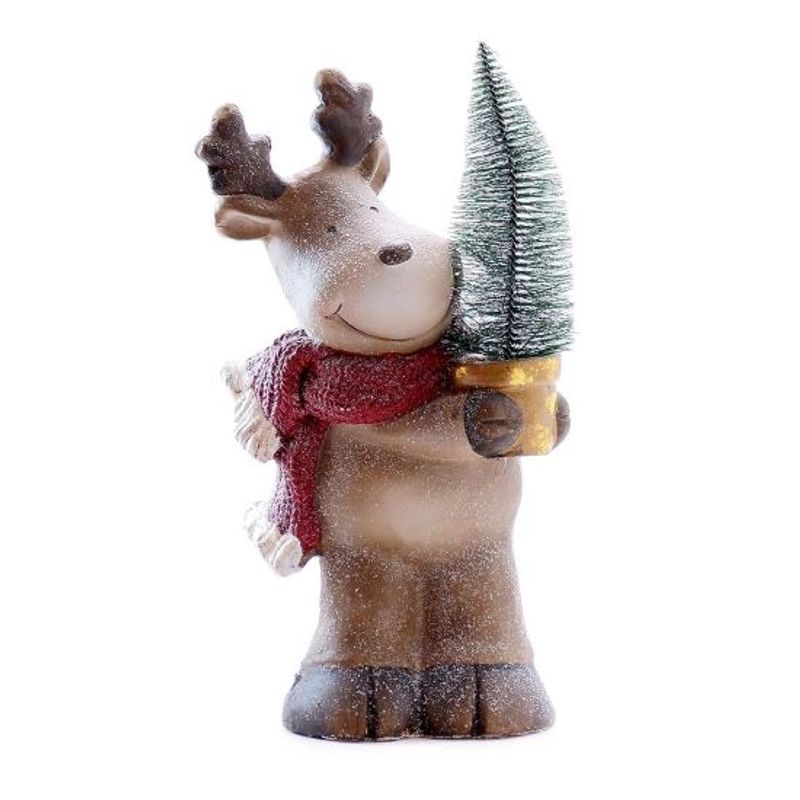 Decoratiune Craciun, ceramica, ren cu brad in ghiveci, LED, 2xLR44, 21x14x39 cm, Chomik Decoratiune Craciun, ceramica, ren cu brad in ghiveci, LED, 2xLR44, 21x14x39 cm, Chomik