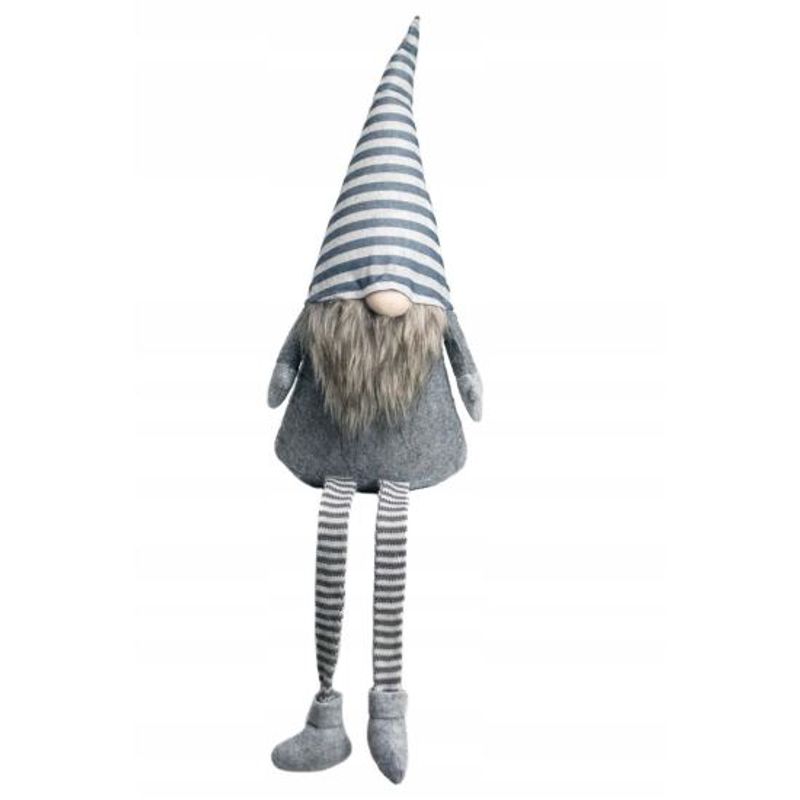 Decoratiune Craciun, pitic cu barba, gri cu dungi, 46 cm Decoratiune Craciun, pitic cu barba, gri cu dungi, 46 cm
