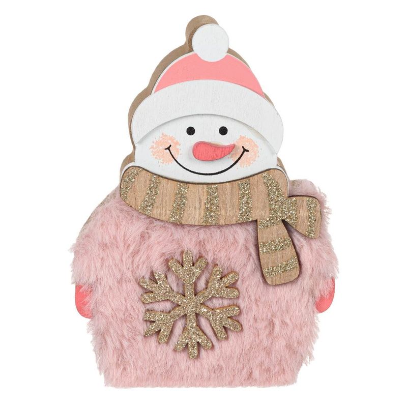 Decoratiune de craciun din lemn, om de zapada cu blana, roz/bej, 9 x 2.5 x 13cm Decoratiune de craciun din lemn, om de zapada cu blana, roz/bej, 9 x 2.5 x 13cm