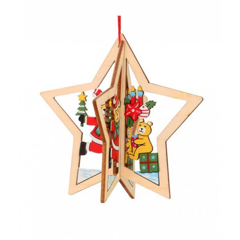 Decoratiune de Craciun, ornamente, din lemn, steluta 3D Decoratiune de Craciun, ornamente, din lemn, steluta 3D