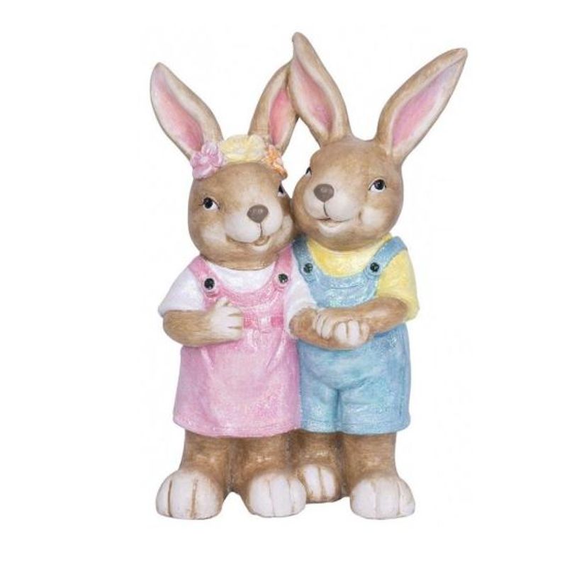 Decoratiune gradina, ceramica, iepurasi, 34x19x51 cm