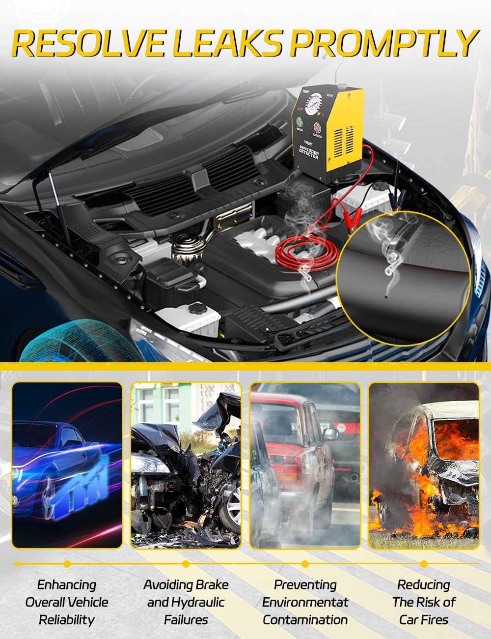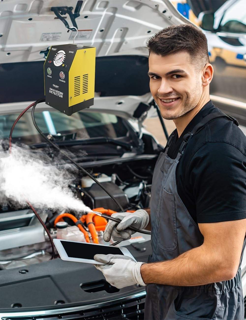 Solary SD302 este un dispozitiv profesional de testare cu fum, proiectat special pentru detectarea scaparilor din sistemele auto. Este ideal pentru mecanici, ateliere auto si pasionati de intretinerea masinii, permitand identificarea rapida si precisa a celor mai mici pierderi de aer sau vapori.