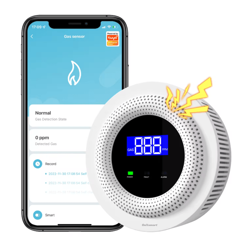 Descopera Detectorul de Gaz OnXsmart®, solutia ideala pentru siguranta locuintei tale. Cu multiple tipuri de gaz detectabile si caracteristici avansate, acest dispozitiv iti ofera o protectie de neegalat impotriva potentialilor pericole.