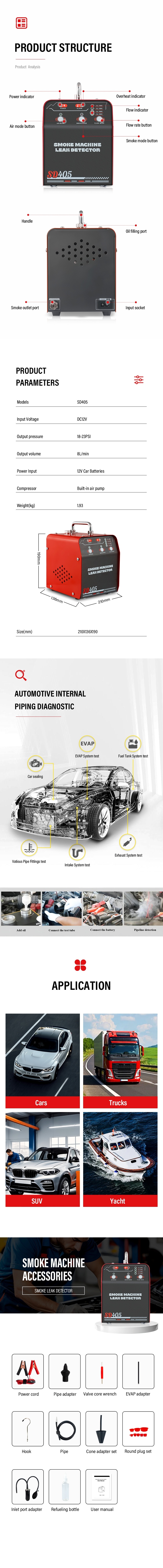 Detector scurgeri cu fum Solary SD405 – aparat de depistare a pierderilor in EVAP/admisie/evacuare, 12V DC, debit 8 L/m Detector scurgeri cu fum Solary SD405 – aparat de depistare a pierderilor in EVAP/admisie/evacuare, 12V DC, debit 8 L/m