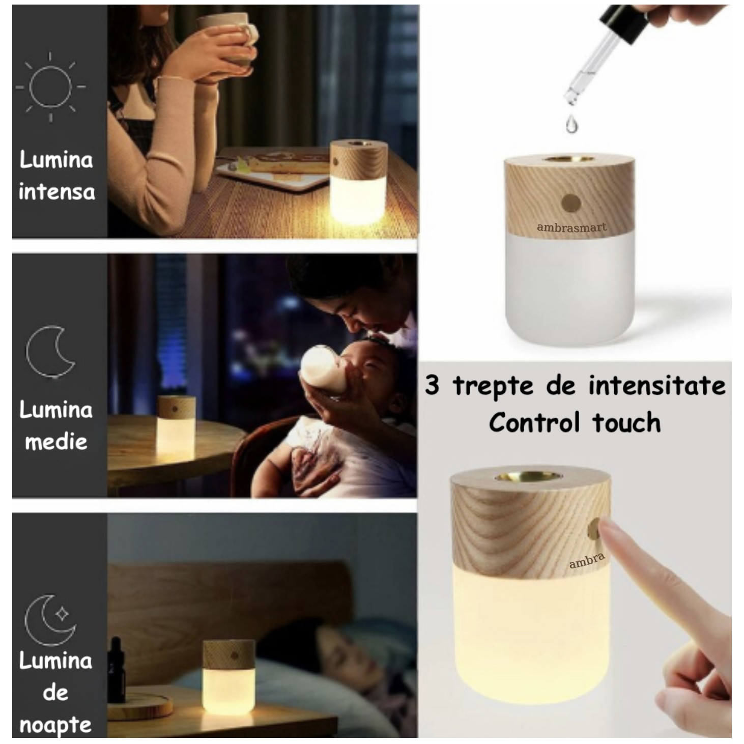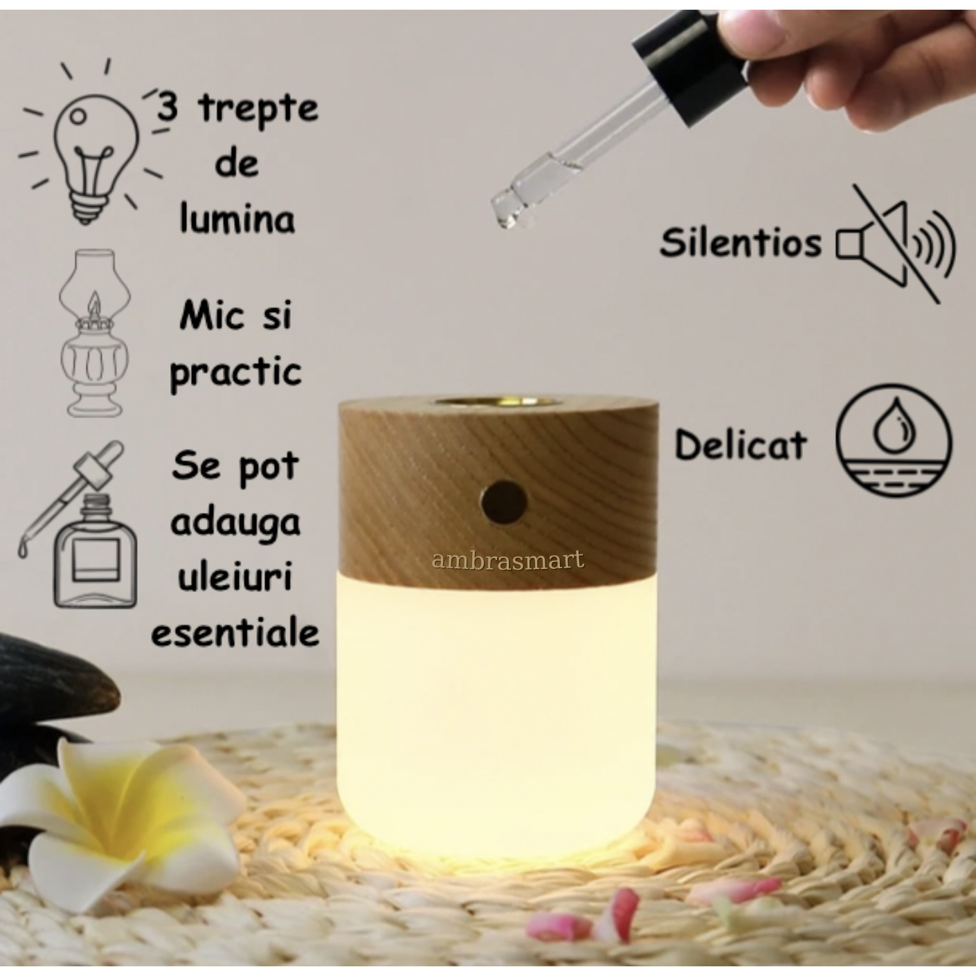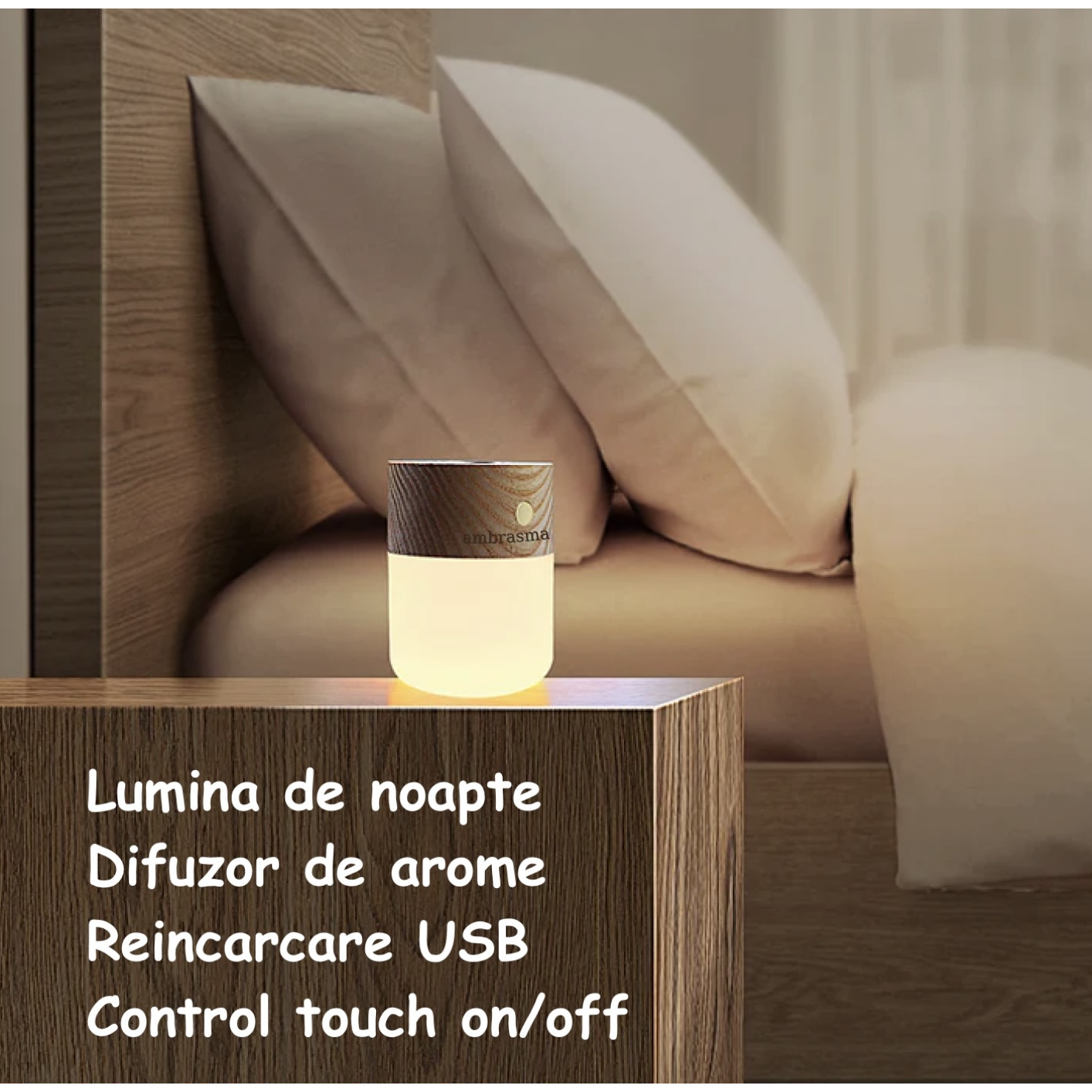 Difuzor Aromaterapie pentru uleiuri esentiale, Lumina de veghe ajustabila, Crem, Lumina calda, Incarcare USB, Portabil Difuzor Aromaterapie pentru uleiuri esentiale, Lumina de veghe ajustabila, Crem, Lumina calda, Incarcare USB, Portabil