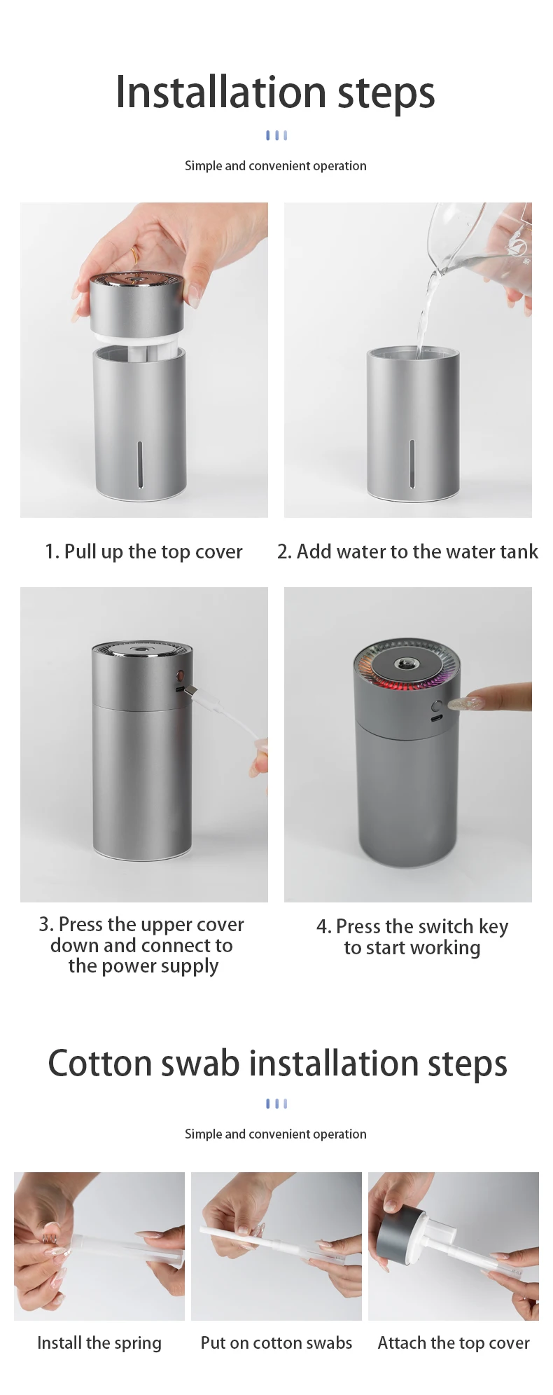 Difuzor aromaterapie, Umidificator auto cu leduri, negru, portabil , rezervor 260ml, gri Difuzor aromaterapie, Umidificator auto cu leduri, negru, portabil , rezervor 260ml, gri