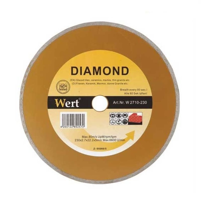 Disc diamantat, taiere beton, ceramica, caramida Wert 2710-230, Ø230x22.2 mm Disc diamantat, taiere beton, ceramica, caramida Wert 2710-230, Ø230x22.2 mm
