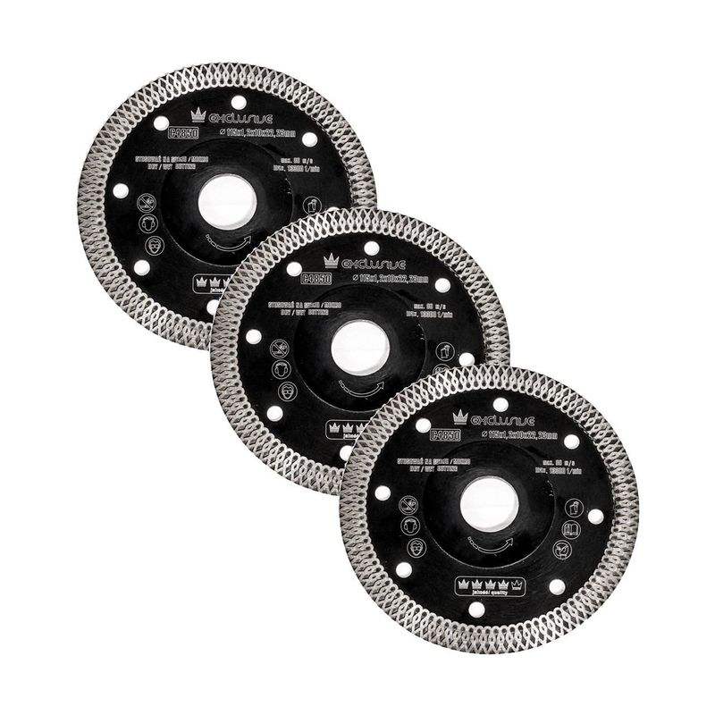Discuri diamantate turbo, subtiri, placi ceramice, taiere umeda si uscata, set 3 buc, 115 mm/22.23 mm, Richmann Exclusive