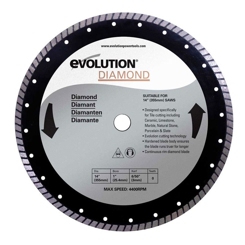 Disc pentru fierastrau circular, taiere marmura, piatra Evolution RAGEBLADE355D, Ø355x25.4 mm Disc pentru fierastrau circular, taiere marmura, piatra Evolution RAGEBLADE355D, Ø355x25.4 mm