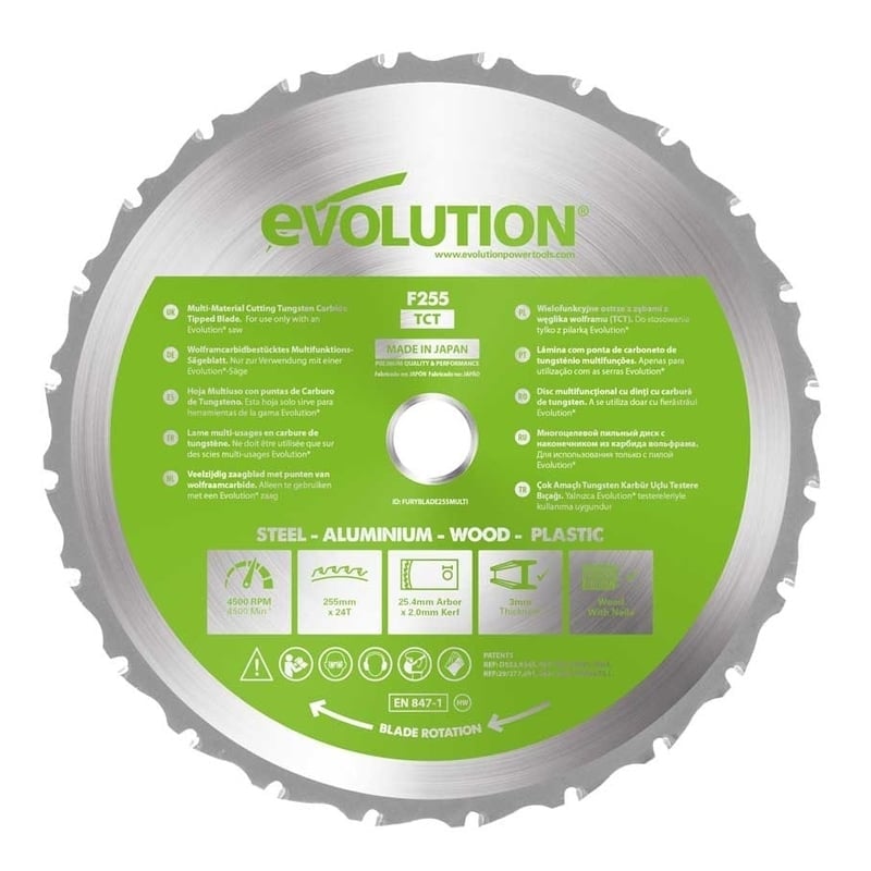 - Discul de taiere multimaterial Evolution Fury de Ø255 mm este capabil sa taie in otel moale, aluminiu, plastic, lemn si chiar lemn cu cuie
