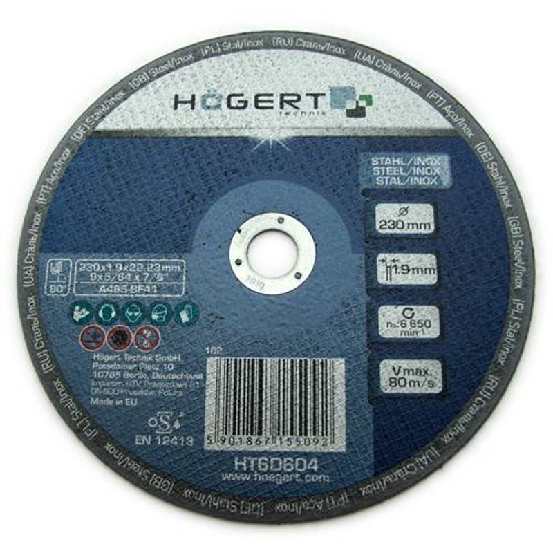 Disc polizor otel inox, Hogert, HT6D604, 230x1.9mm, 22.23mm Disc polizor otel inox, Hogert, HT6D604, 230x1.9mm, 22.23mm