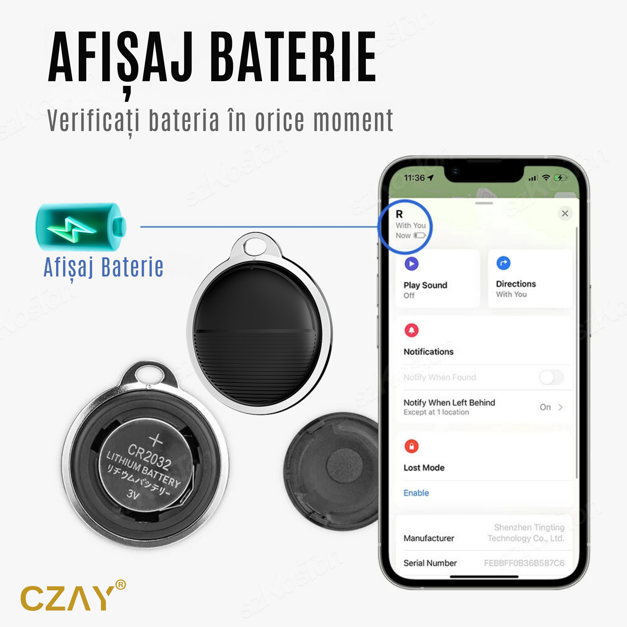 ATENTIE! Compatibil doar cu iPHONE sau alt dispozitiv cu sistemul de operare Apple iOS: iPhone, iPad sau Apple Watch⚜️ Dispozitivul antipierdere CZAY® este solutia inteligenta pentru a localiza rapid si usor obiectele de valoare, animalele de companie sau chiar persoanele dragi. Compact si portabil, acest dispozitiv de localizare GPS este perfect pentru soferi, calatori si proprietarii de animale. Fie ca vrei sa localizezi cheile, bagajul sau zgarda animalului tau de companie, dispozitivul este usor de atasat si compatibil cu orice device Apple prin aplicatia FindMy, fara a necesita descarcarea unui software suplimentar.
