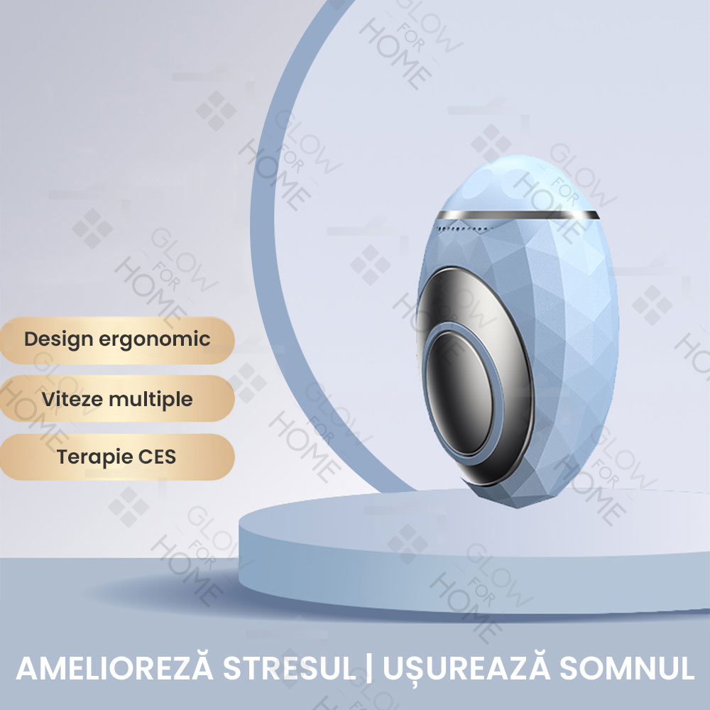 Dispozitiv inteligent de stimulare a somnului, GlowforHome, pentru adulti, aparat portabil de mana, micro-curent, anti insomnie, ajutor pentru dormit, ameliorarea anxietatii, stimularea pulsului, incarcare USB, albastru