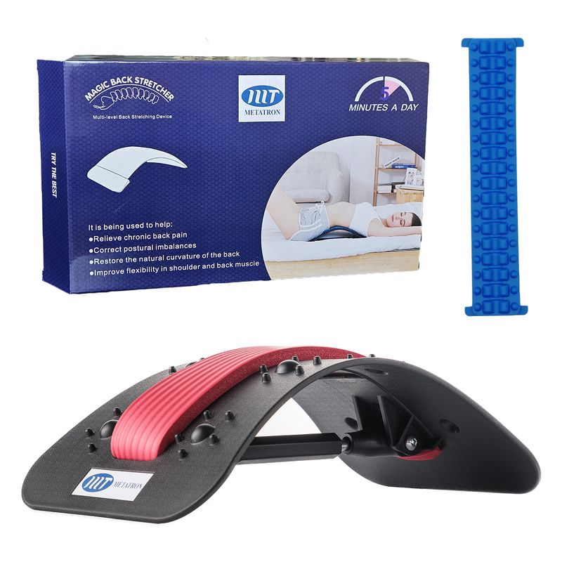 METATRON SUPER BACK Stretcher este solutia simpla si portabila pentru intinderea si relaxarea spatelui. Cu doar 10-15 minute pe zi, te poate ajuta sa eliberezi tensiunea musculara si sa iti corectezi postura, acasa, la birou, in timpul condusului sau chiar in calatorii.